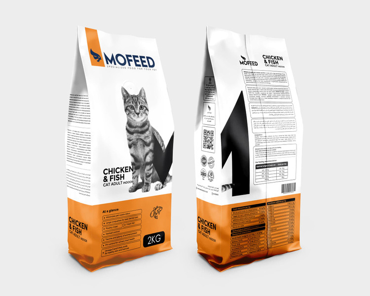 غذای خشک گربه بالغ تولید شده با گوشت مرغ و ماهی.