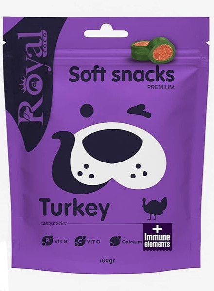 اسنک نرم مخصوص سگ رویال کوکو با طعم بوقلمون Royal coco soft snacks with turkey وزن ۱۰۰ گرم، محصولی مغذی و خوشطعم برای تقویت انرژی و سلامت سگها است.
